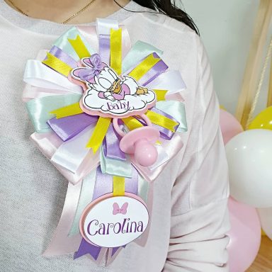 Ideal para llevar durante el baby shower y para crear recuerdos únicos en fotos, este pin se adapta a cualquier estilo de decoración y encaja a la perfección en baby showers personalizados en Madrid.
