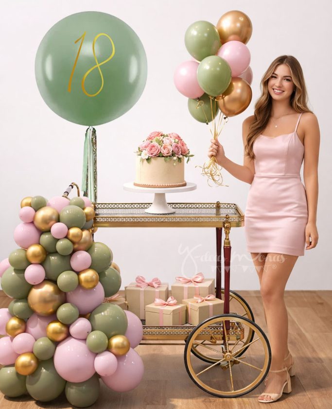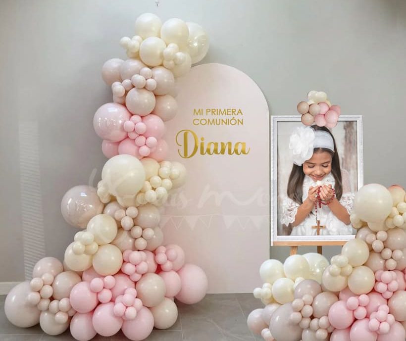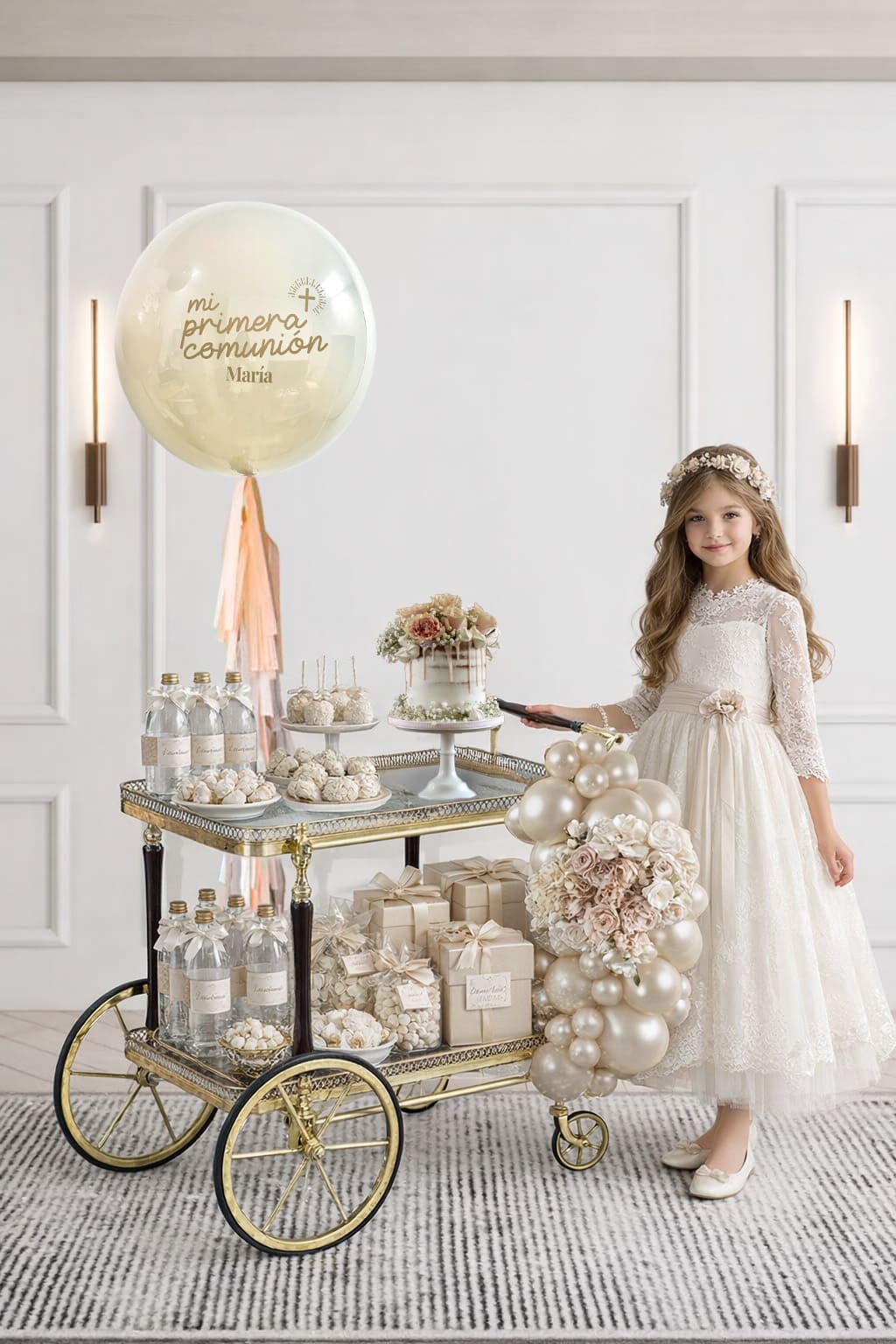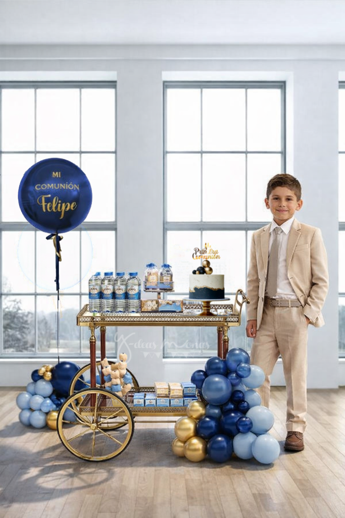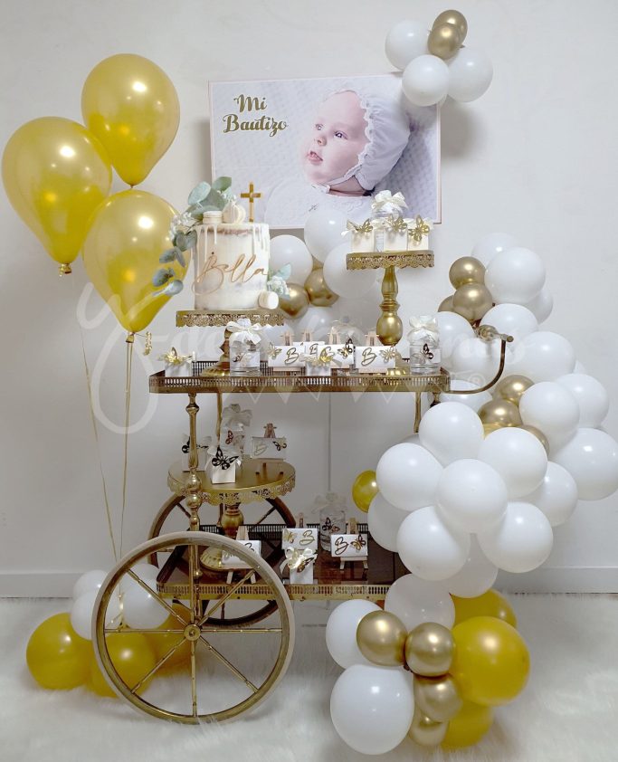 Carrito Vintage, decorado con globos, tendencia en Bautizos, Comuniones y Celebraciones Especiales.